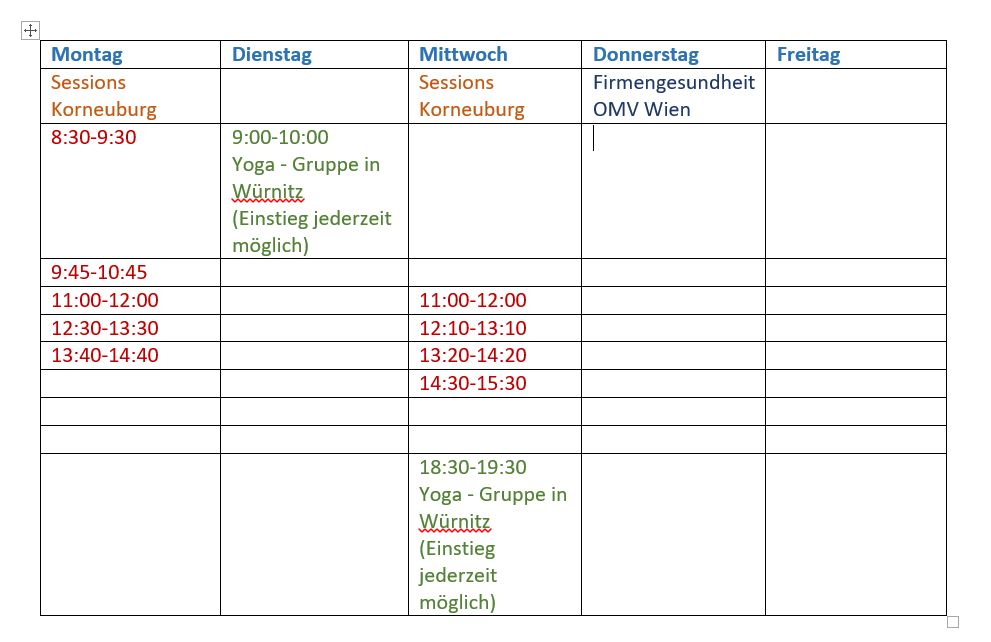 Cranio/ Cranio&Atmung/ Yoga/ Konzentrationstraining